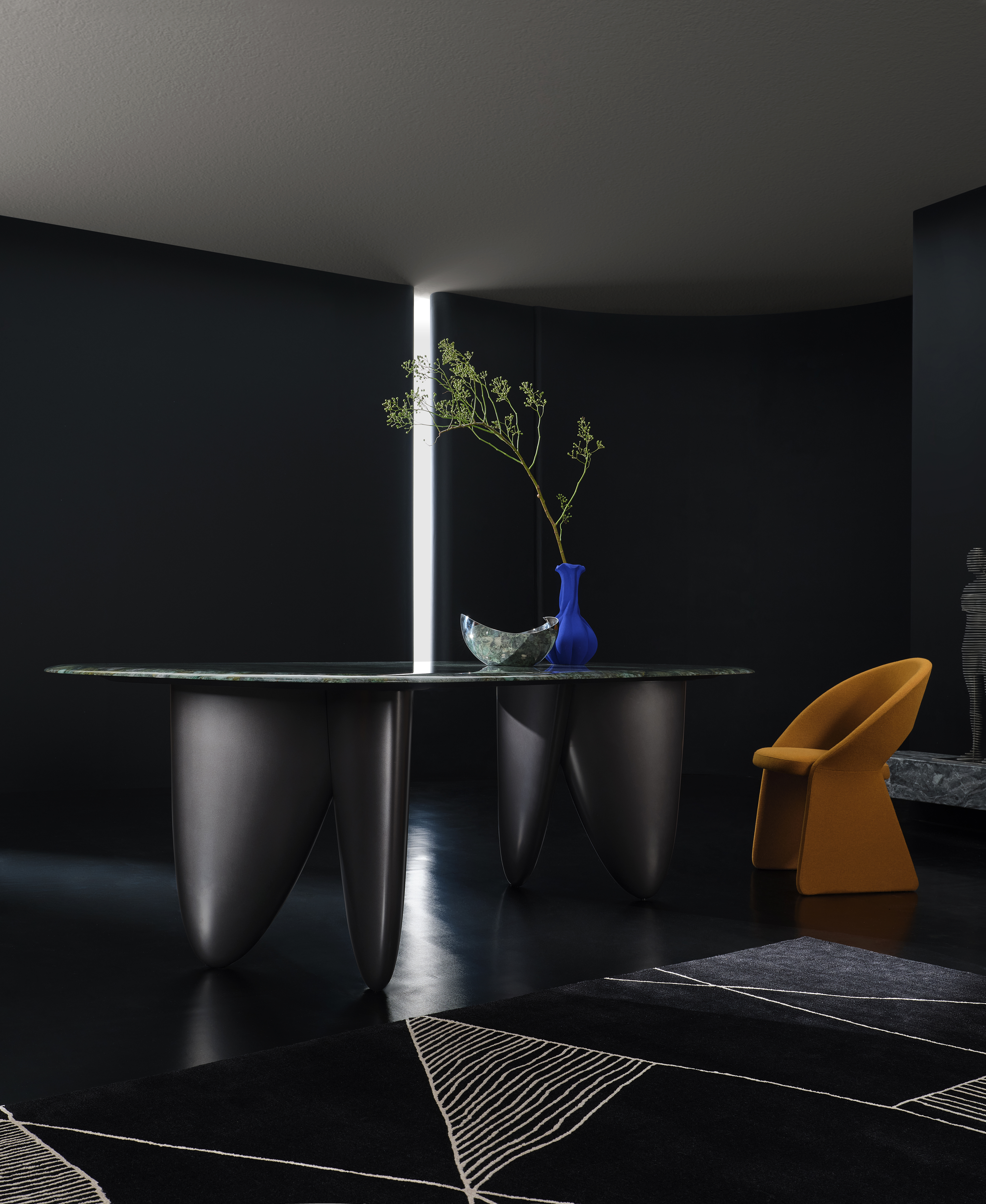 The WRAP collection is characterized by a refined and elegant design. It is inspired by the 'wrap dress' of the 1970s, a model wrap dress that became an iconic garment, a symbol of modernity and femininity. Like the 'wrap dress', this collection wraps in an elegant and timeless style. A continuous, clean line unites legs and back with a soft, sinuous curve. An eye-catching design that becomes racy thanks to iconic proportions that alternate straight and curved lines.
