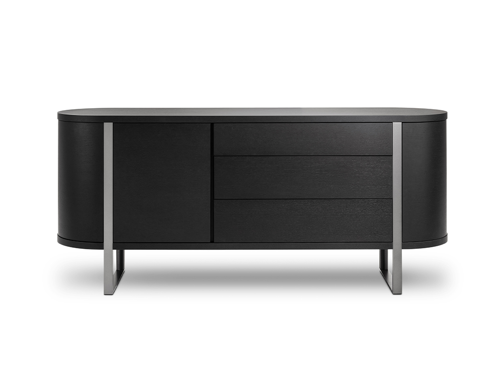 PLEGAT sideboard inherits the design concept of the collection. Natural material coexists with functions. Wood texture is delicate and elegant. Composite wooden columns stand on metal frame to show beauty and elegance of the cabinet.