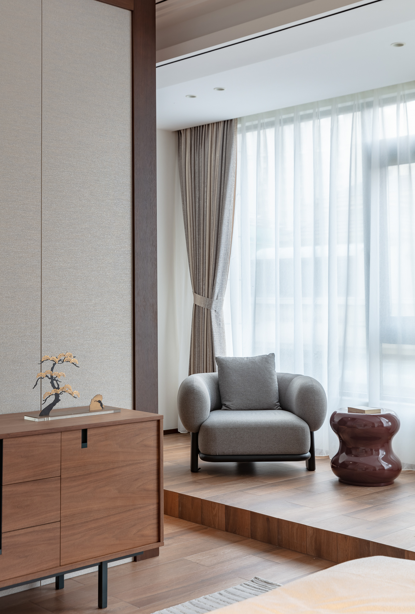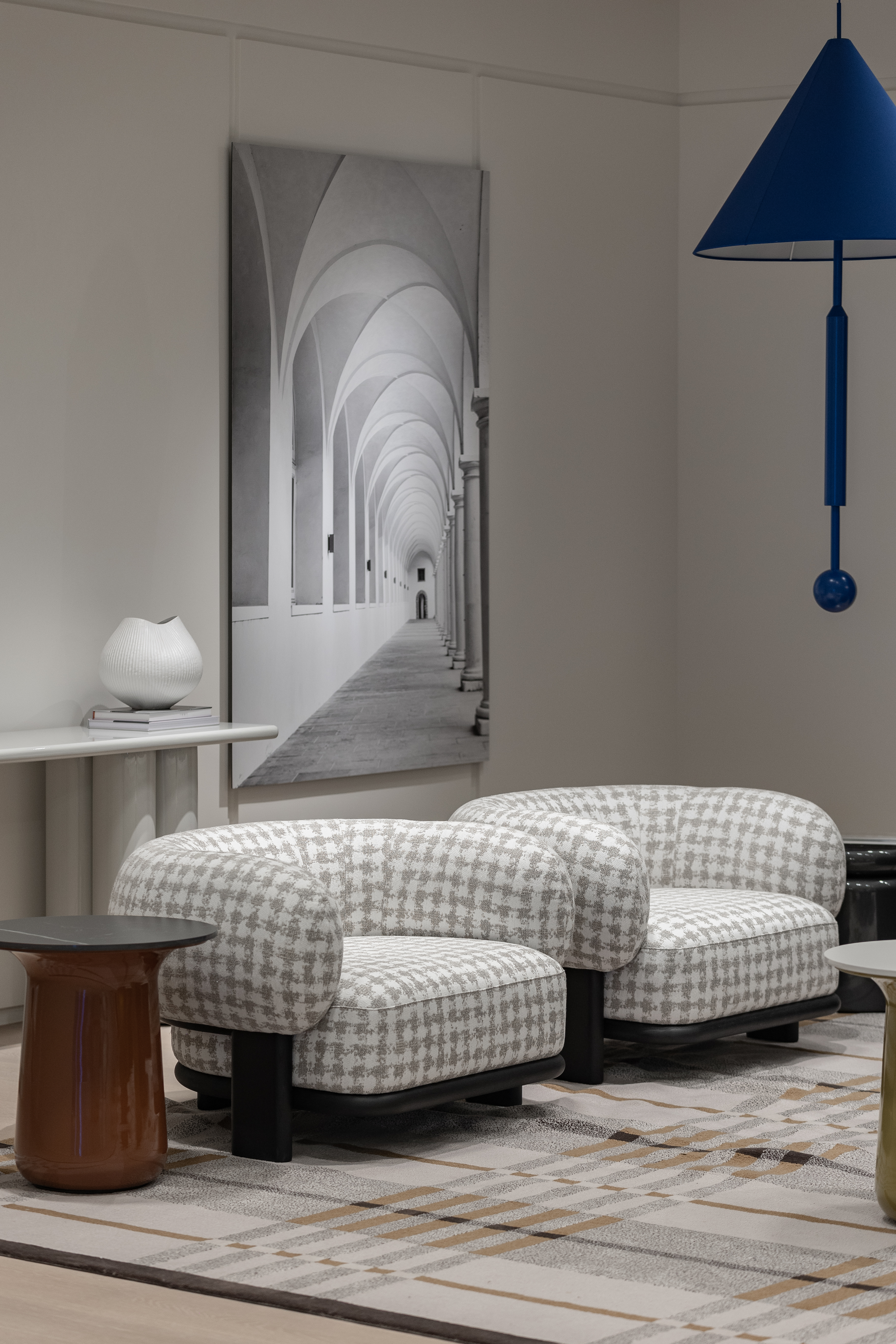 BOL armchair has a strong character, but its “bonbon head” shape appears cozy and elegant. BOL is exceedingly comfortable when seated, thanks to its curly back, which provides fine support. With a designed wood frame supporting the back and the bottom, it shows smooth and round details and arrangement, gives off a powerful and humorous character.
