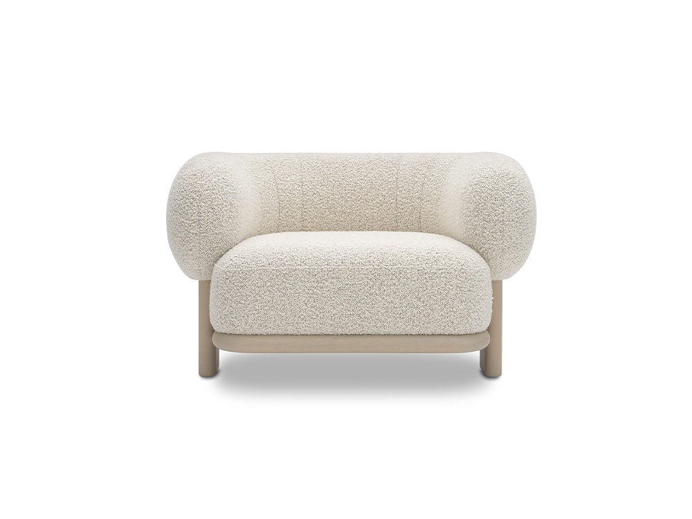 BOL armchair has a strong character, but its “bonbon head” shape appears cozy and elegant. BOL is exceedingly comfortable when seated, thanks to its curly back, which provides fine support. With a designed wood frame supporting the back and the bottom, it shows smooth and round details and arrangement, gives off a powerful and humorous character.