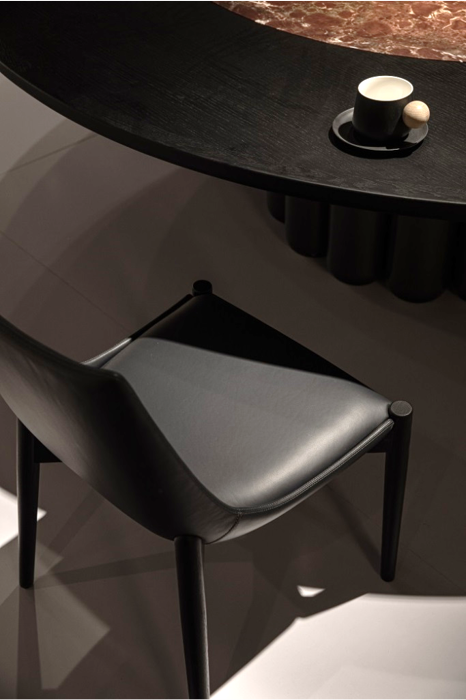 The ARCO Dining Chair features slim, tapered solid wood legs paired with a beautifully curved leather seat and backrest, embodying a sleek and minimalist modern aesthetic. Whether in a dining room, home office, or executive suite, the ARCO Chair offers upright, elegant seating, making it an ideal choice for any sophisticated space.