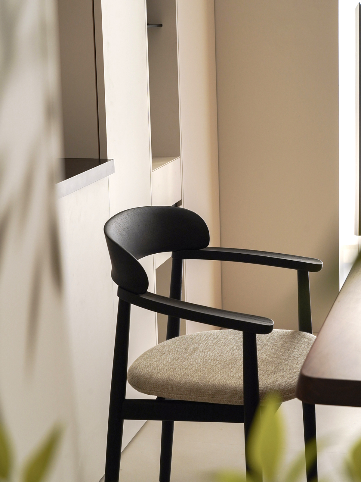 NOTCH dining chair blending traditional craftsmanship with modern design to celebrate the concept “less is more”. Bent solid wood backrest offers graceful profile, and curved solid wood armrest shows elegance and fine details.